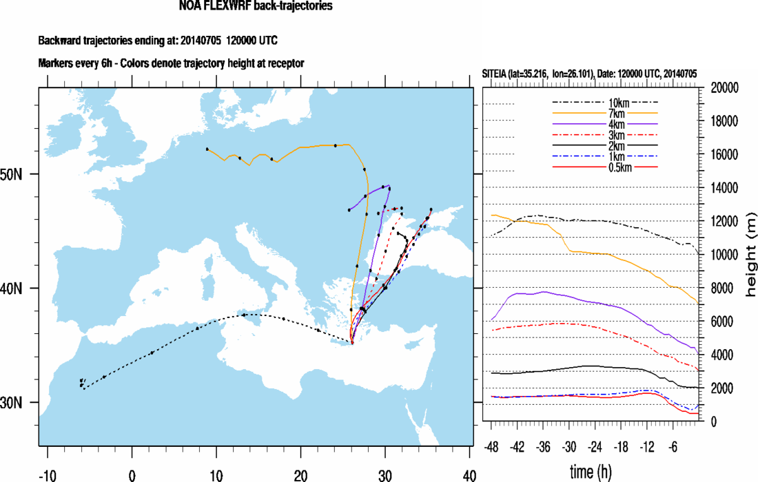 Graph 6: Backtrajectories forecast for Sitia (+ 48 h)