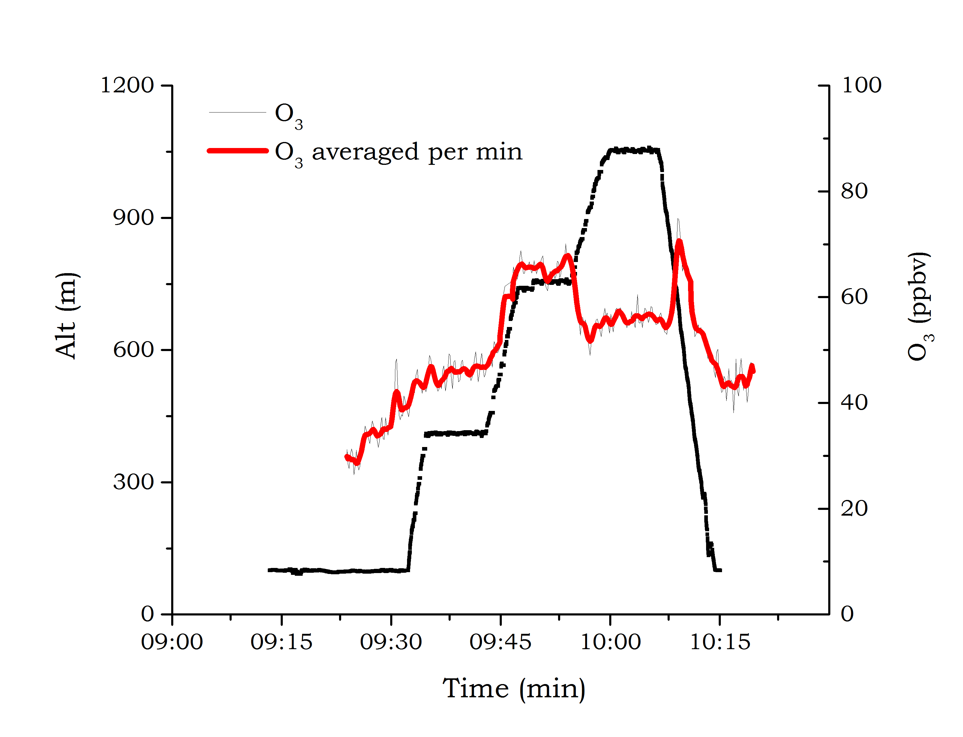 Graph 2: Ozone concentration averaged per minute