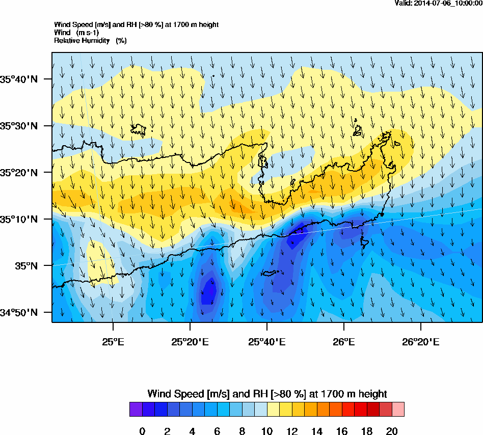 Graph 5: arw040.png - Wind Speed [m/s] and RH [>80%] at 1700 m height