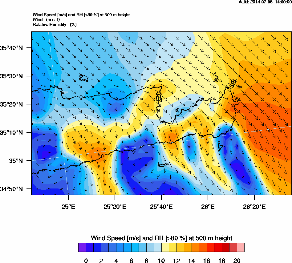 Graph 2: arw057.png - Wind Speed [m/s] and RH [>80%] at 500 m height