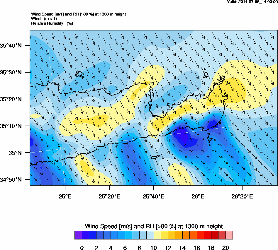 Graph 4: arw059.png - Wind Speed [m/s] and RH [>80%] at 1300 m height