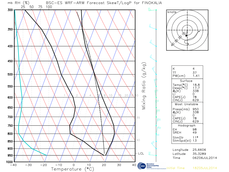 Graph 4: Skew-T diagram for 18:00 UTC