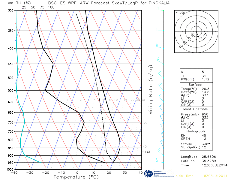 Graph 3: Skew-T diagram for 12:00 UTC