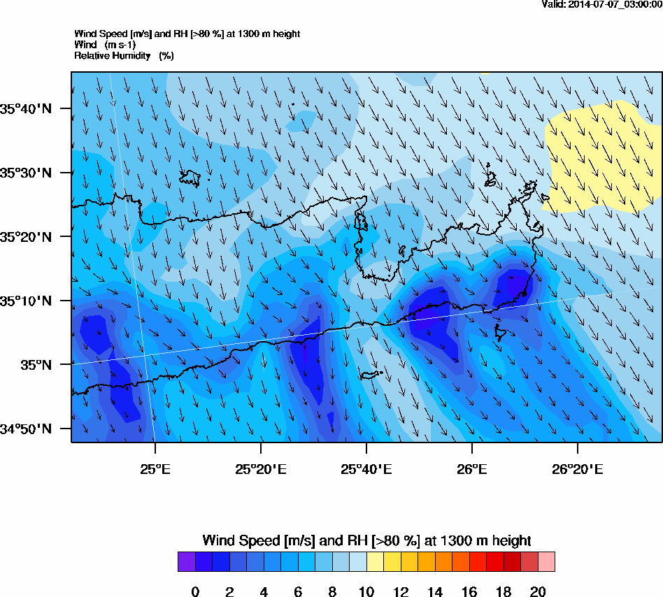 Graph 3: arw003.png - Wind Speed [m/s] and RH [>80%] at 1000 m height