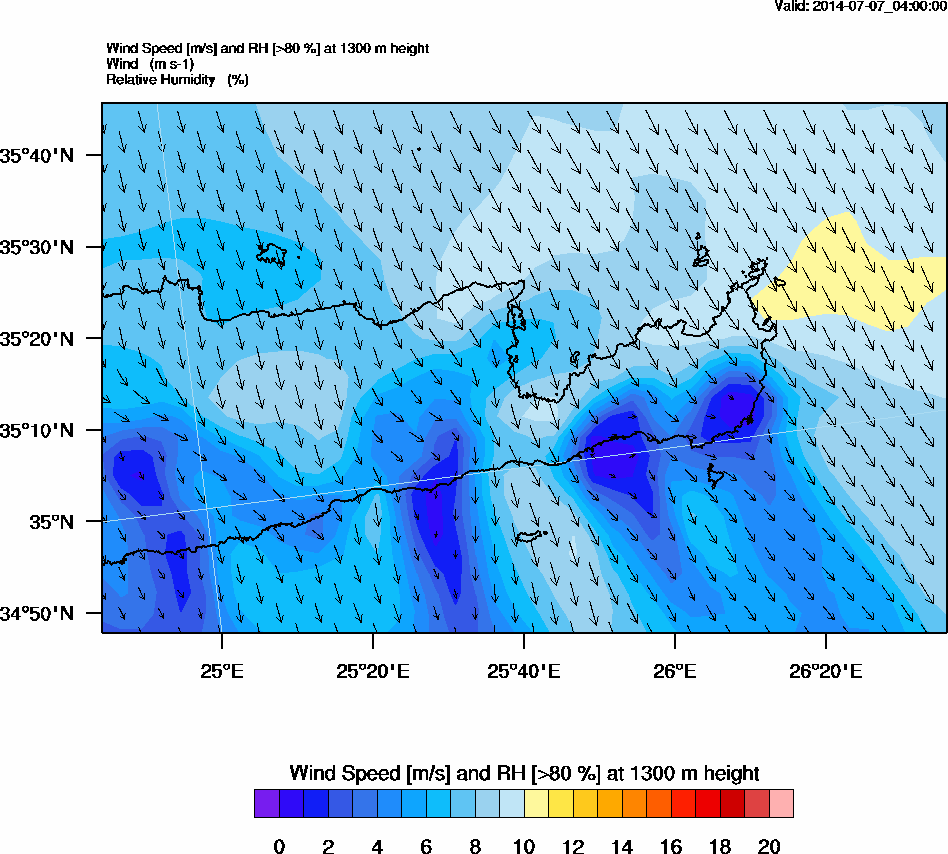 Graph 4: arw009.png - Wind Speed [m/s] and RH [>80%] at 1300 m height
