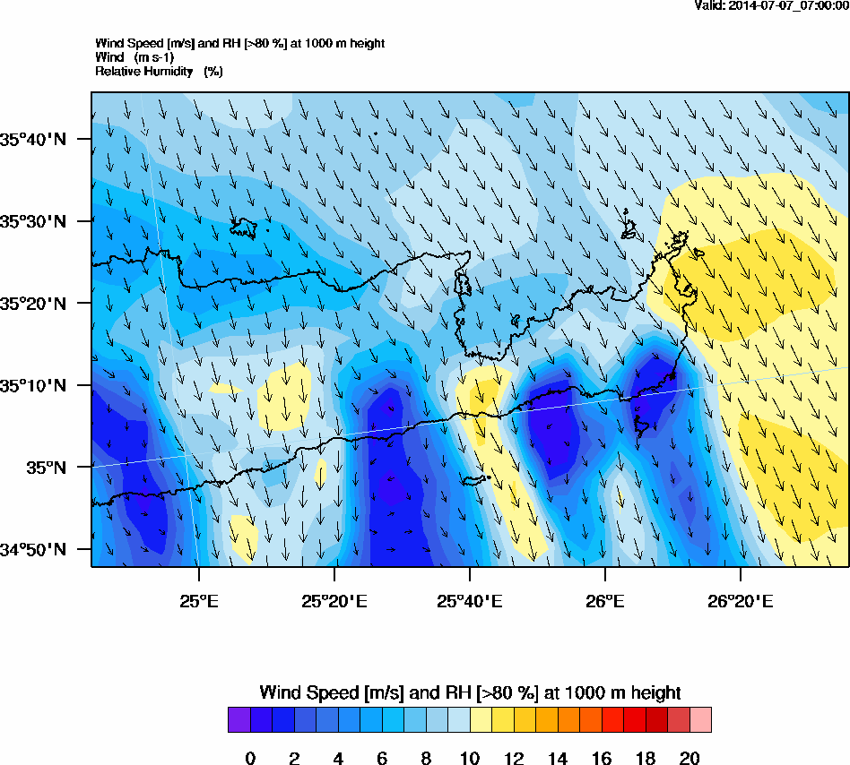 Graph 3: arw023.png - Wind Speed [m/s] and RH [>80%] at 1000 m height