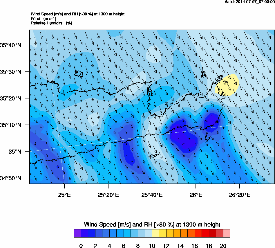 Graph 4: arw024.png - Wind Speed [m/s] and RH [>80%] at 1300 m height