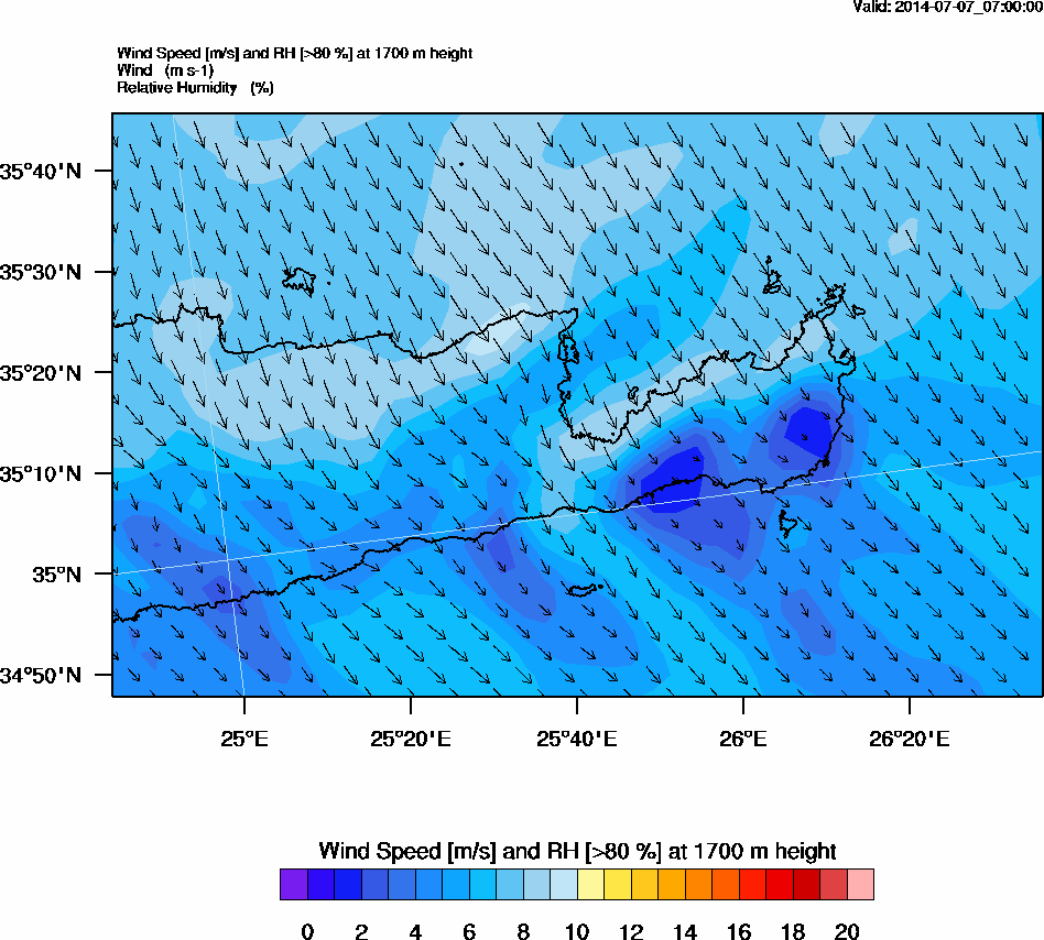 Graph 5: arw025.png - Wind Speed [m/s] and RH [>80%] at 1700 m height