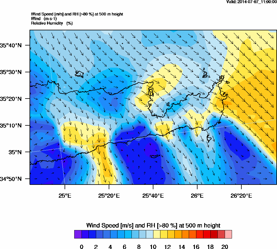 Graph 2: arw042.png - Wind Speed [m/s] and RH [>80%] at 500 m height