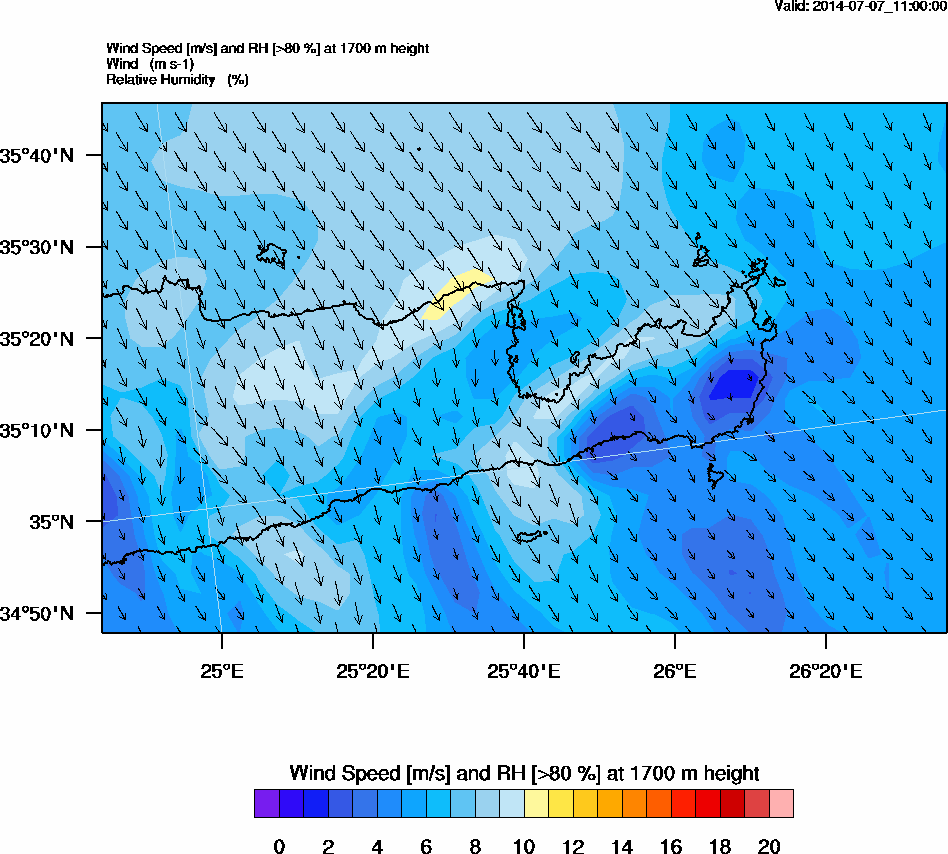 Graph 5: arw045.png - Wind Speed [m/s] and RH [>80%] at 1700 m height