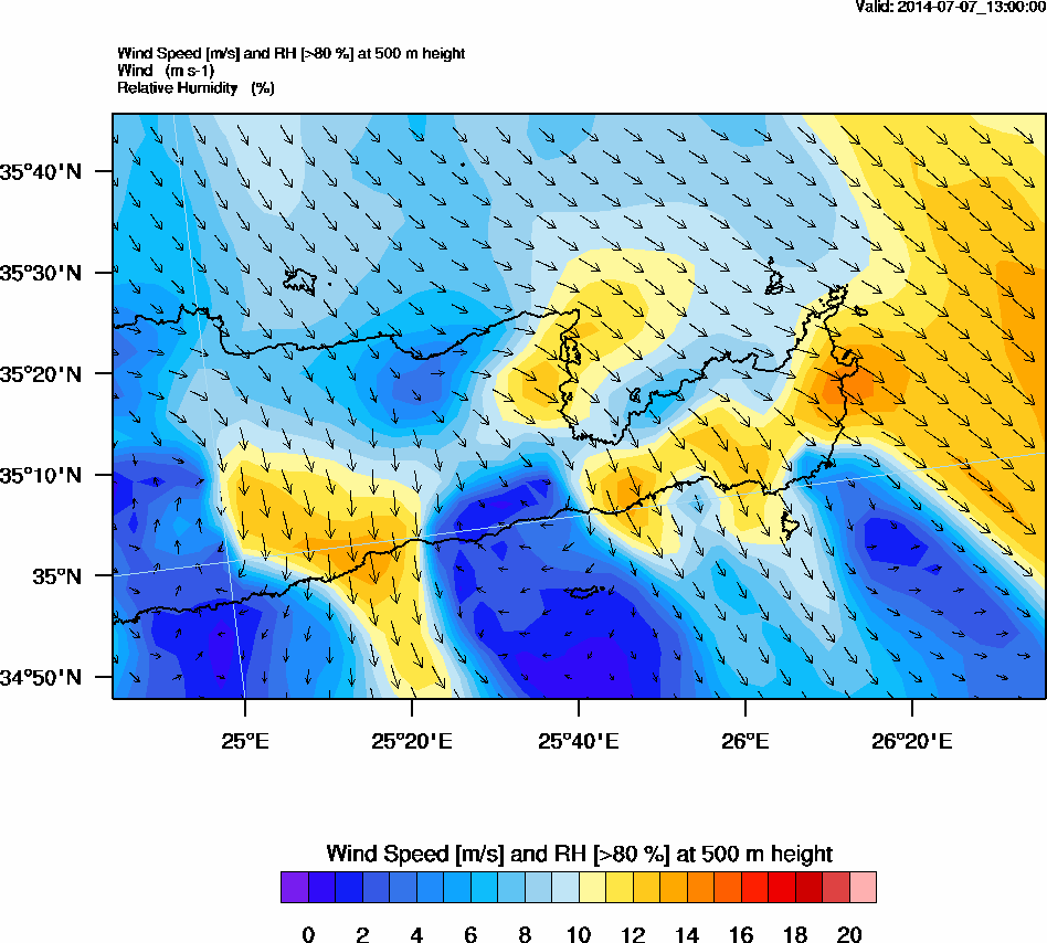 Graph 2: arw052.png - Wind Speed [m/s] and RH [>80%] at 500 m height