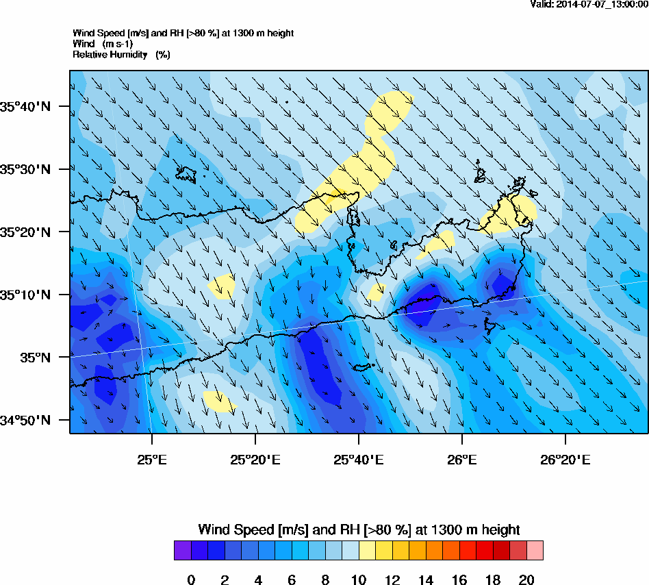 Graph 4: arw054.png - Wind Speed [m/s] and RH [>80%] at 1300 m height