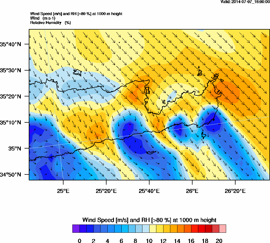 Graph 3: arw068.png - Wind Speed [m/s] and RH [>80%] at 1000 m height