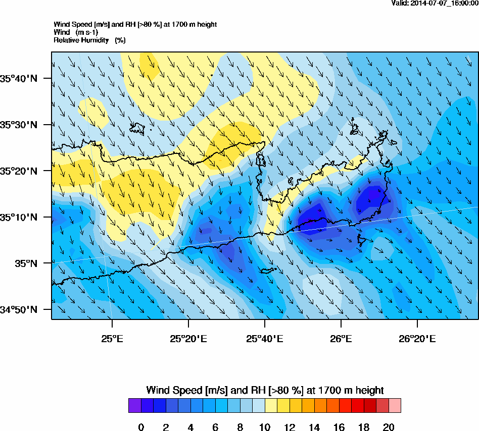 Graph 5: arw070.png - Wind Speed [m/s] and RH [>80%] at 1700 m height