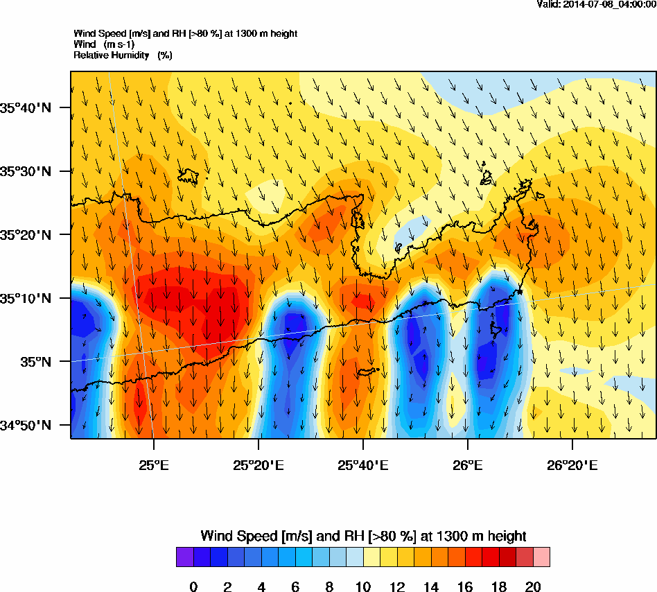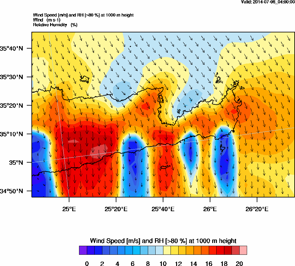 Graph 3: arw008.png - Wind Speed [m/s] and RH [>80%] at 1000 m height