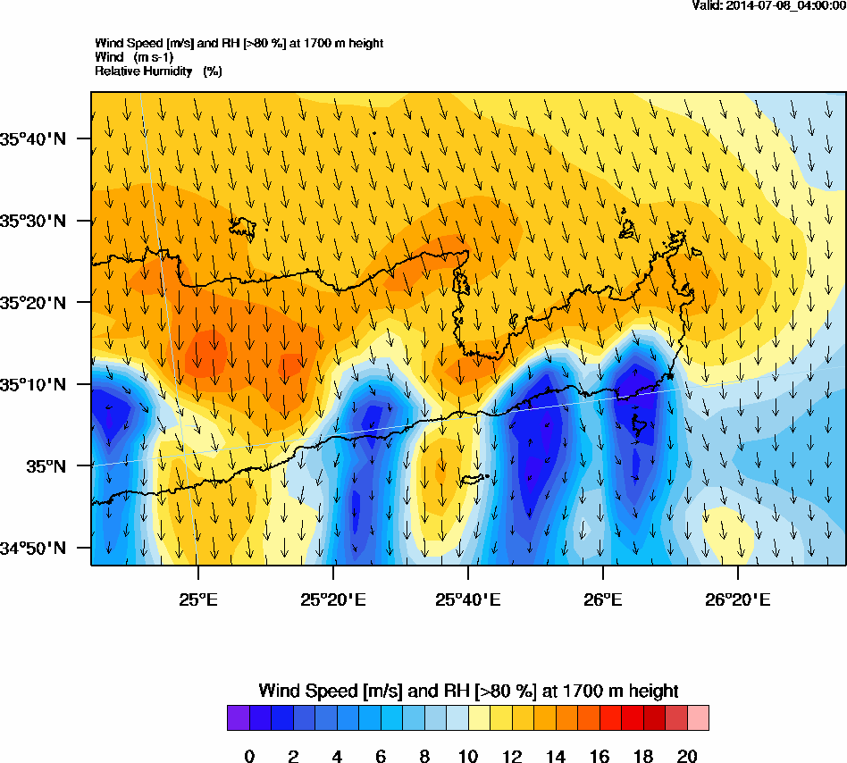Graph 5: arw010.png - Wind Speed [m/s] and RH [>80%] at 1700 m height