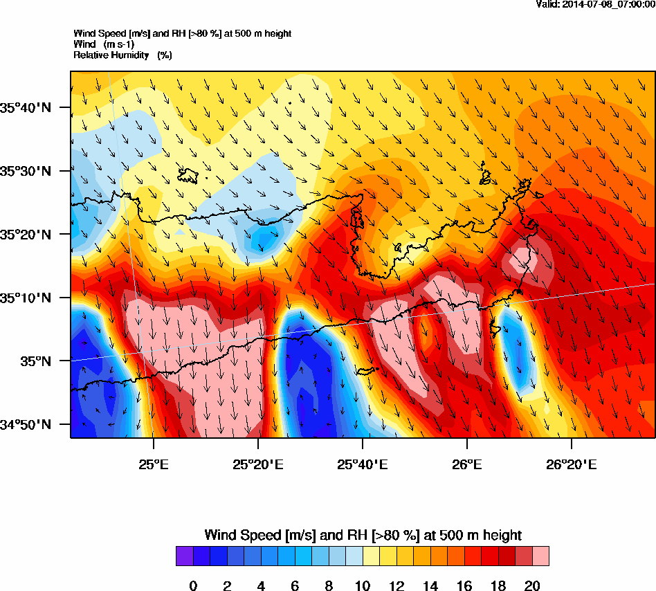 Graph 2: arw022.png - Wind Speed [m/s] and RH [>80%] at 500 m height
