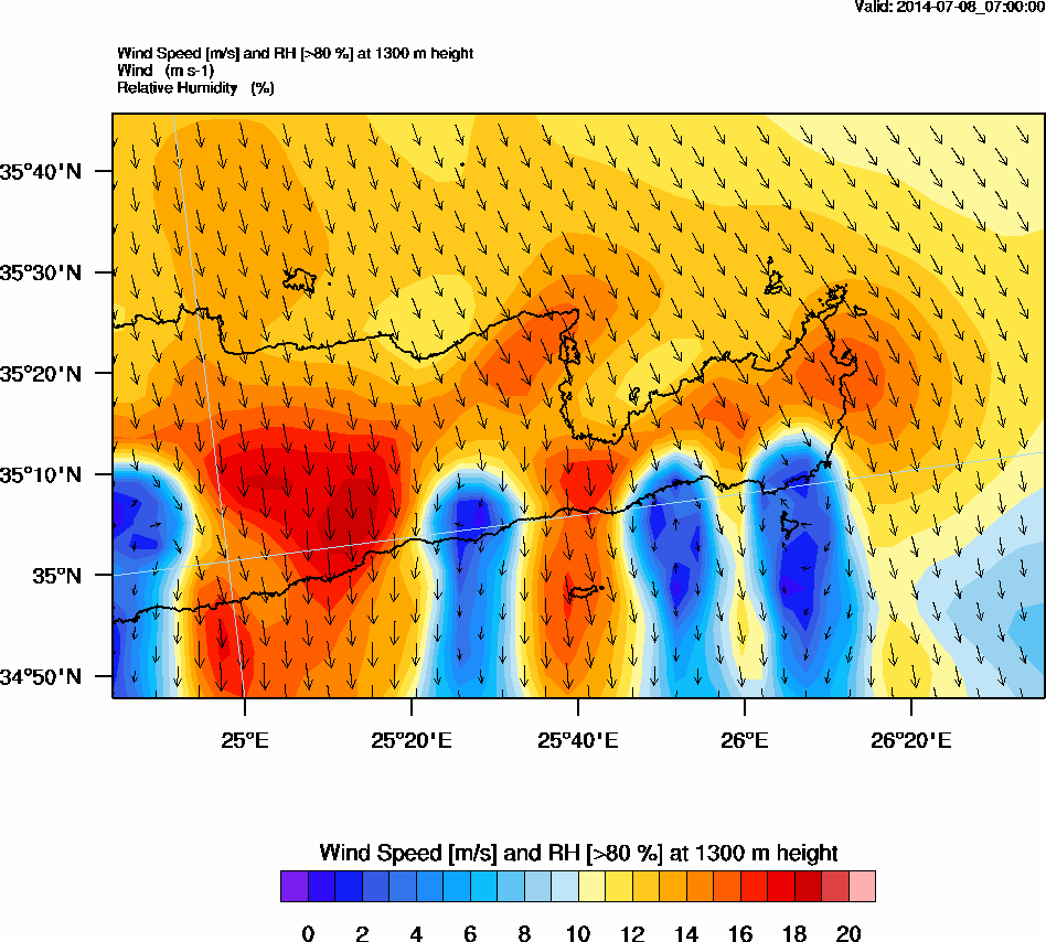 Graph 4: arw024.png - Wind Speed [m/s] and RH [>80%] at 1300 m height