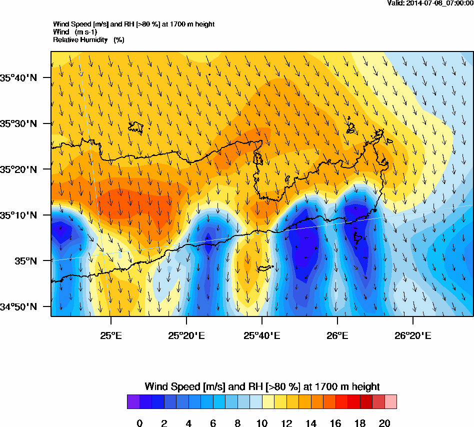 Graph 5: arw025.png - Wind Speed [m/s] and RH [>80%] at 1700 m height