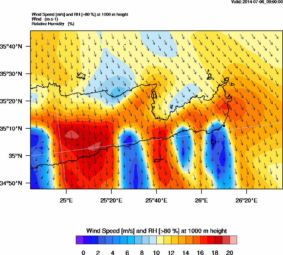 Graph 3: arw033.png - Wind Speed [m/s] and RH [>80%] at 1000 m height