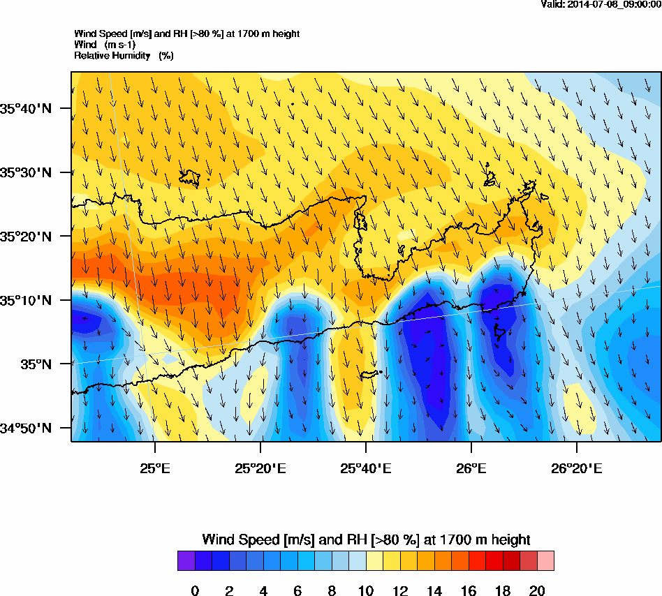 Graph 5: arw035.png - Wind Speed [m/s] and RH [>80%] at 1700 m height