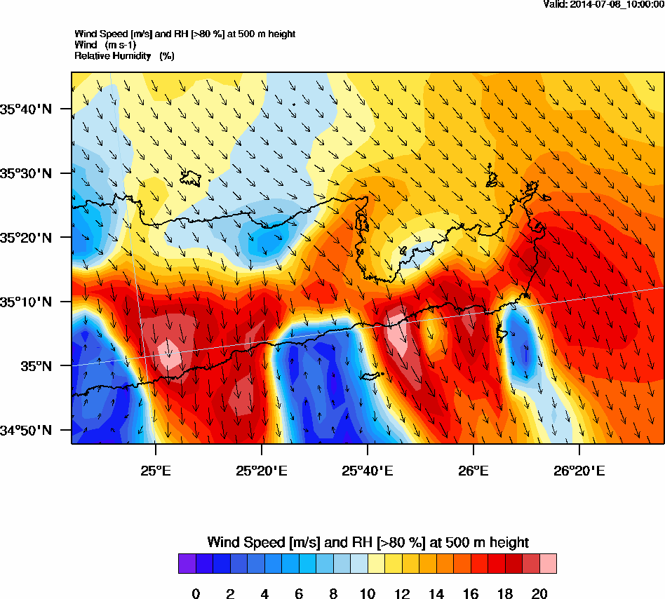 Graph 2: arw037.png - Wind Speed [m/s] and RH [>80%] at 500 m height