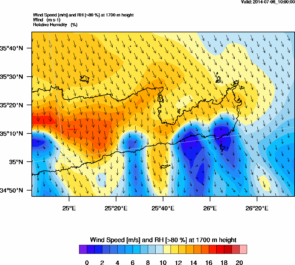 Graph 5: arw040.png - Wind Speed [m/s] and RH [>80%] at 1700 m height