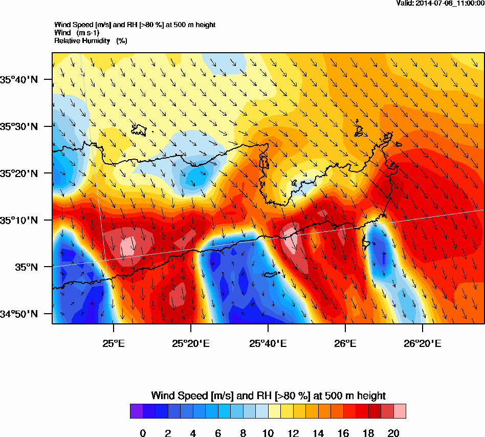 Graph 2: arw042.png - Wind Speed [m/s] and RH [>80%] at 500 m height