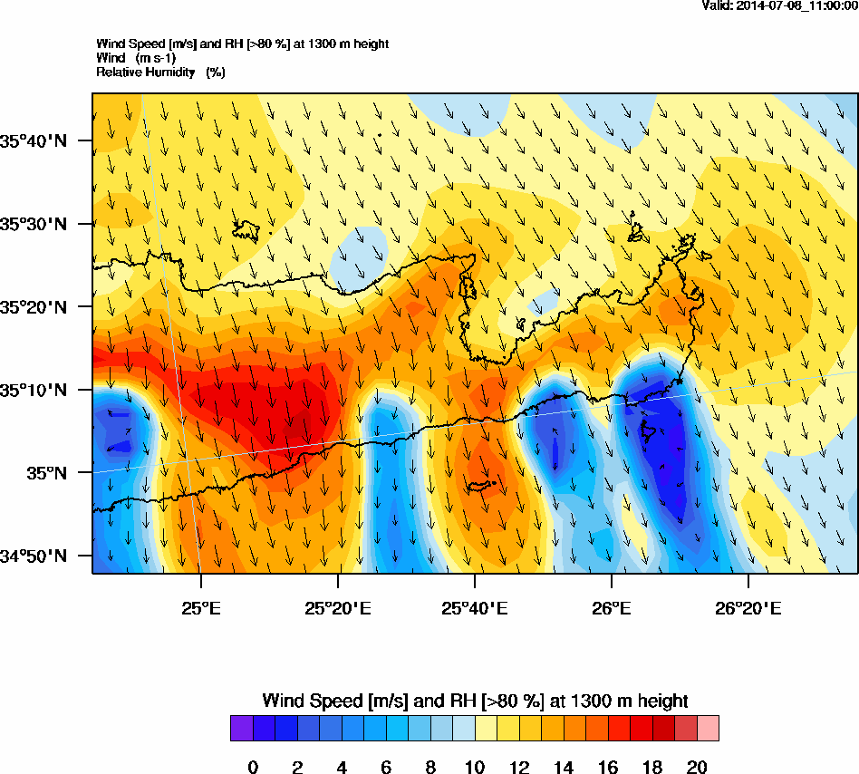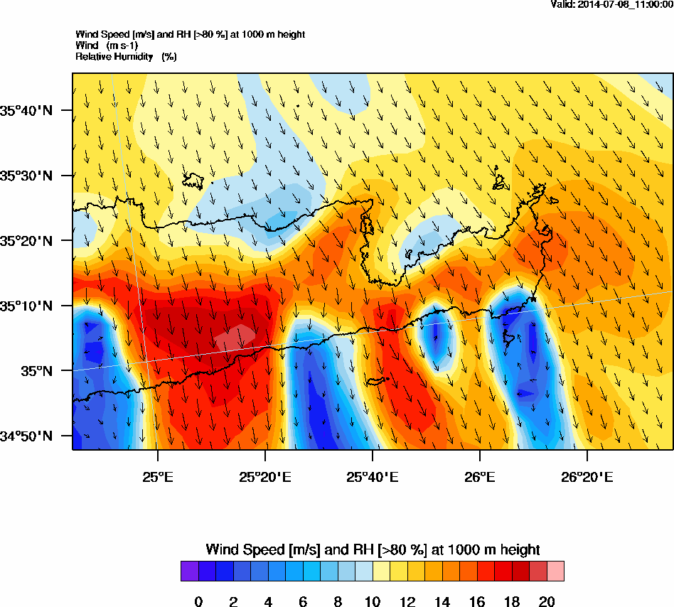 Graph 3: arw043.png - Wind Speed [m/s] and RH [>80%] at 1000 m height