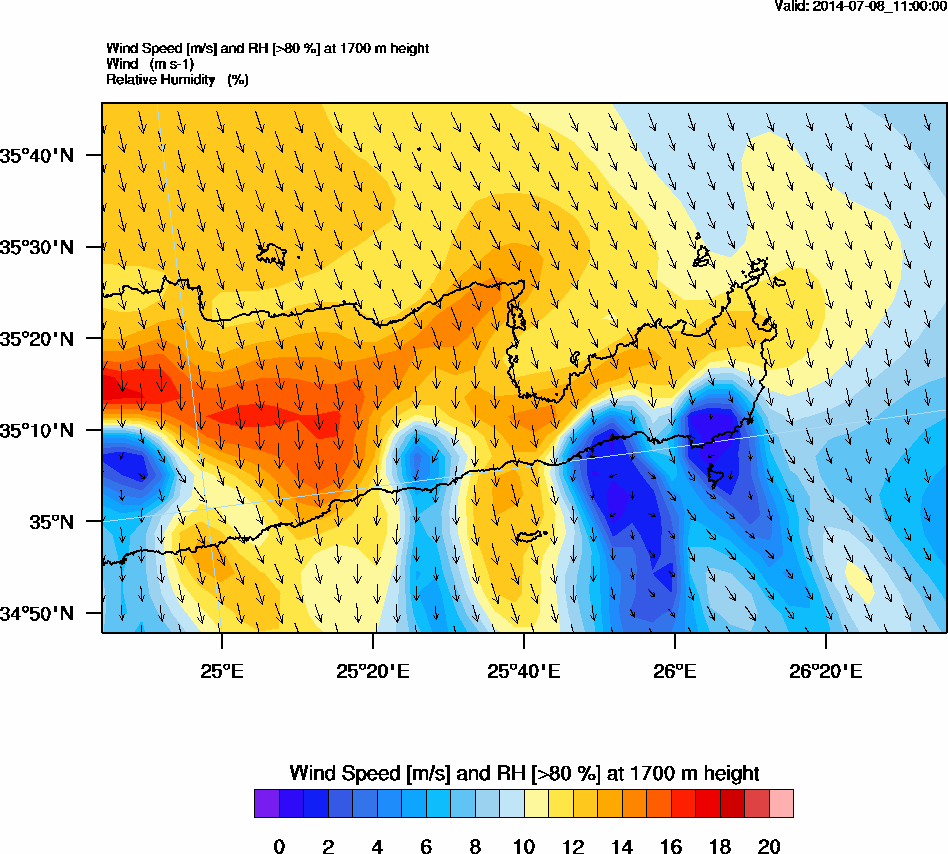 Graph 5: arw045.png - Wind Speed [m/s] and RH [>80%] at 1700 m height