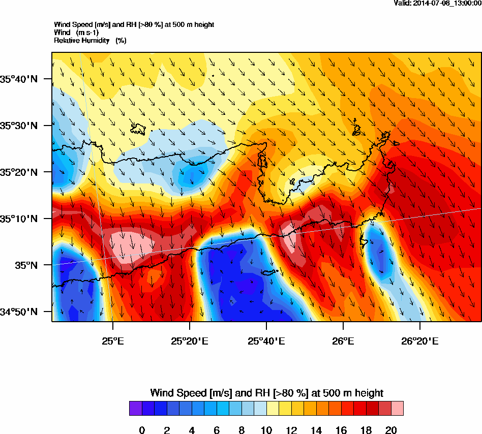 Graph 2: arw052.png - Wind Speed [m/s] and RH [>80%] at 500 m height