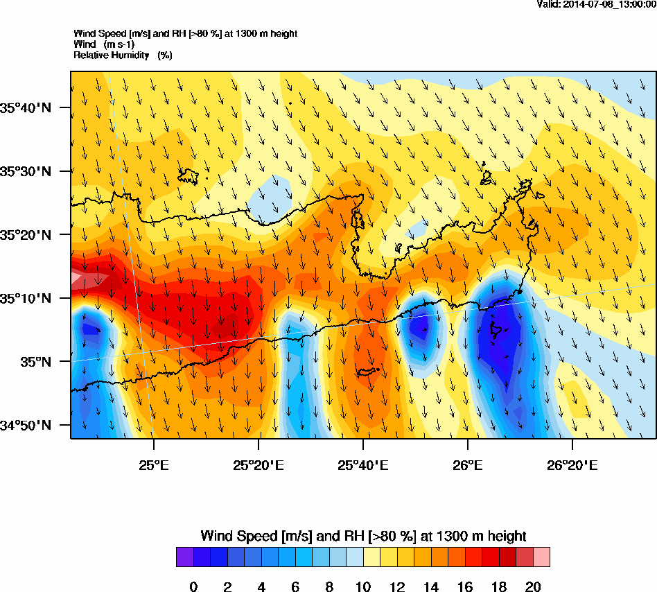Graph 4: arw054.png - Wind Speed [m/s] and RH [>80%] at 1300 m height