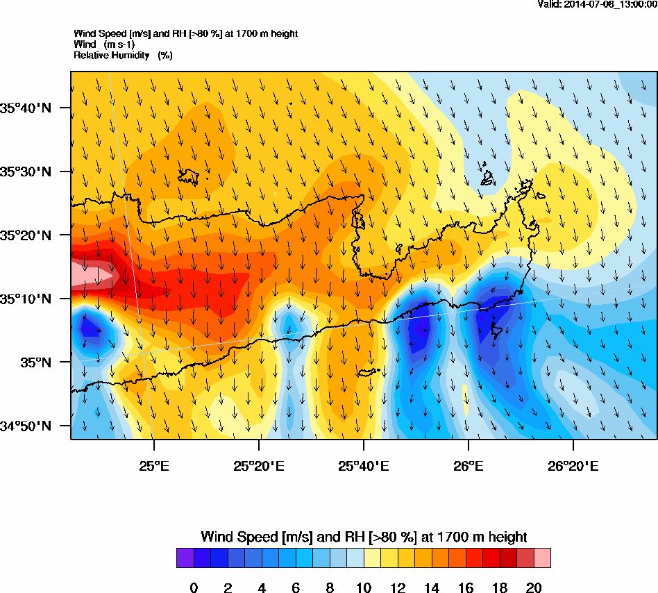 Graph 5: arw055.png - Wind Speed [m/s] and RH [>80%] at 1700 m height