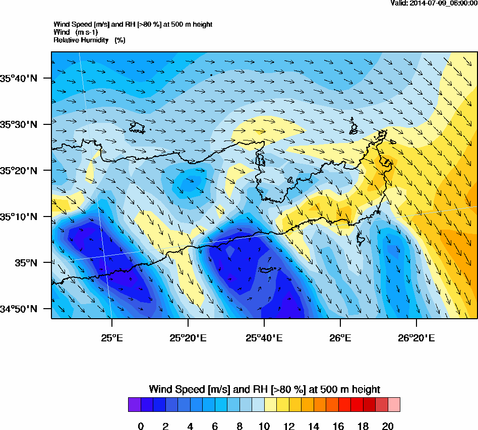 Graph 2: arw017.png - Wind Speed [m/s] and RH [>80%] at 500 m height