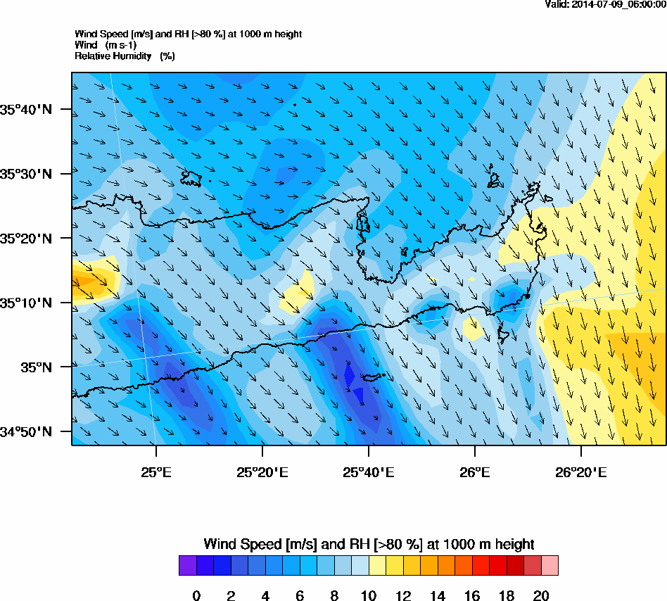 Graph 3: arw018.png - Wind Speed [m/s] and RH [>80%] at 1000 m height