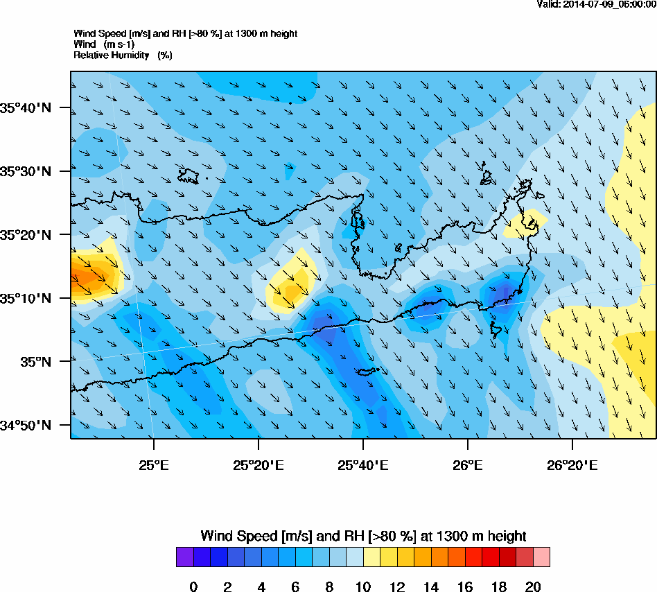 Graph 4: arw019.png - Wind Speed [m/s] and RH [>80%] at 1300 m height
