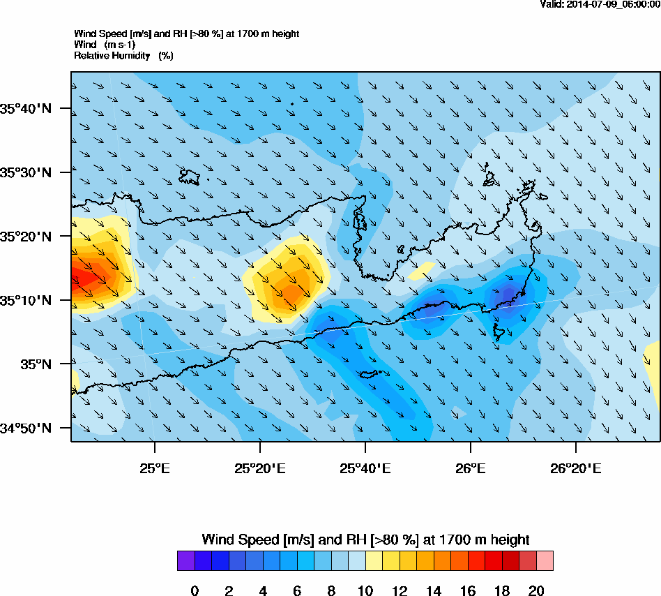 Graph 5: arw020.png - Wind Speed [m/s] and RH [>80%] at 1700 m height