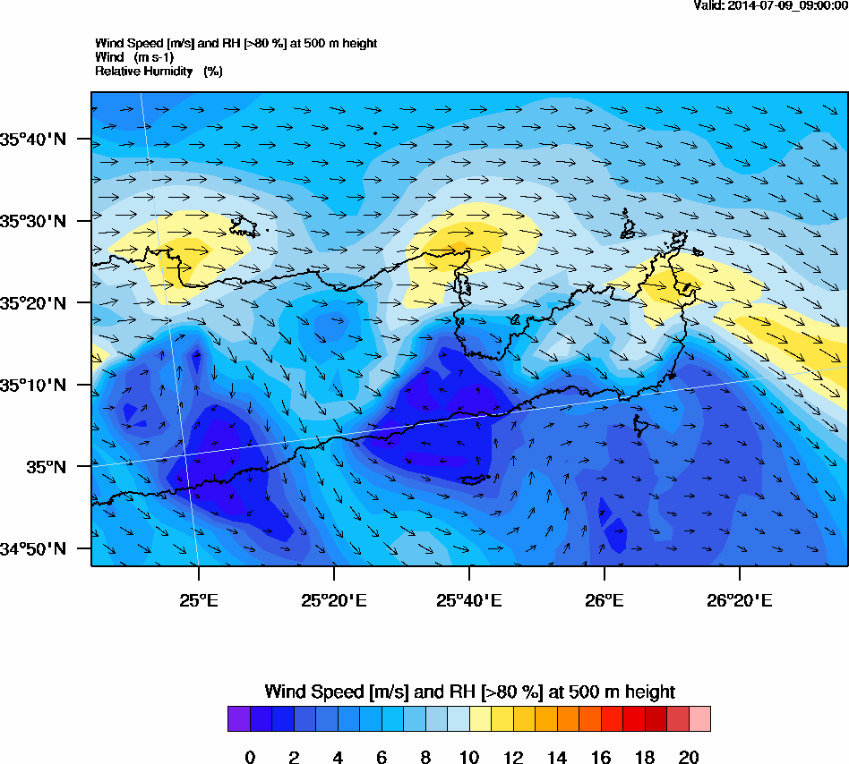 Graph 2: arw032.png - Wind Speed [m/s] and RH [>80%] at 500 m height