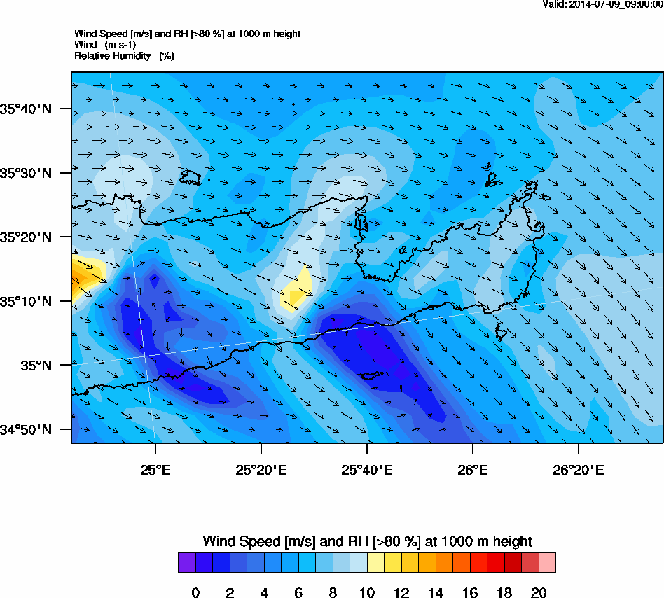Graph 3: arw033.png - Wind Speed [m/s] and RH [>80%] at 1000 m height