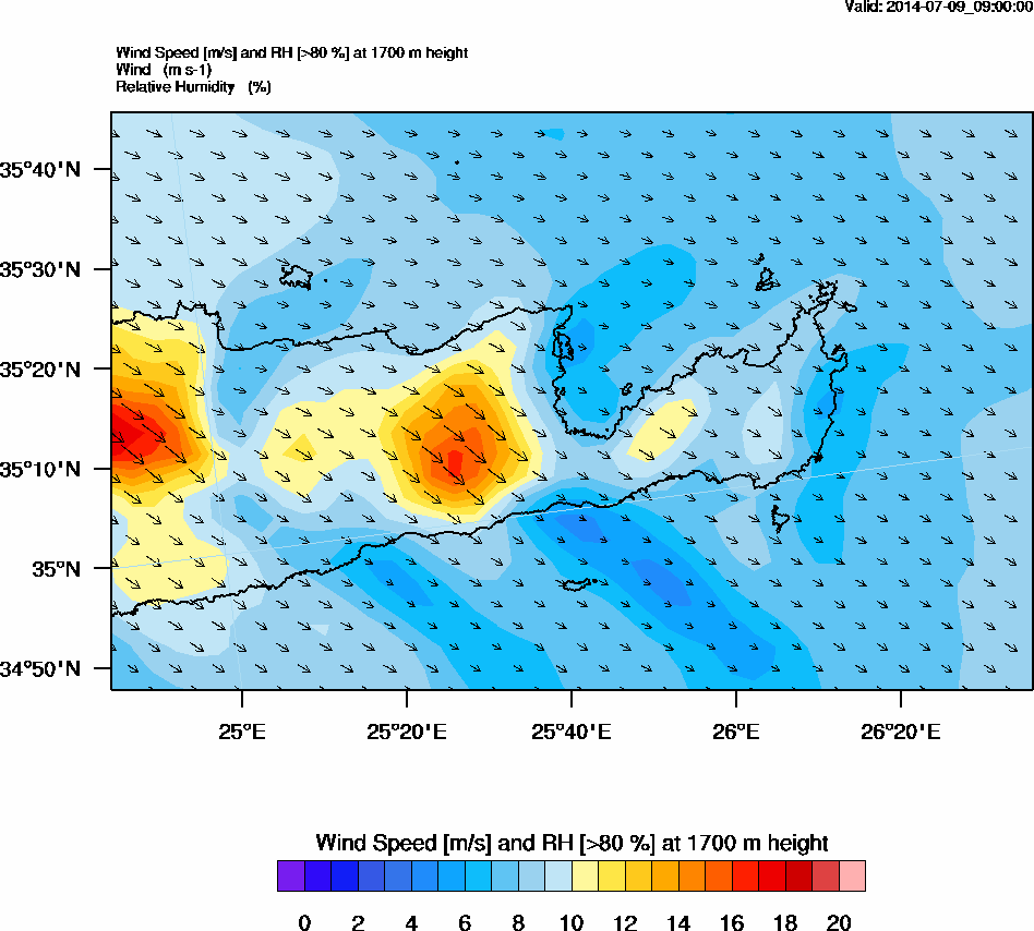 Graph 5: arw035.png - Wind Speed [m/s] and RH [>80%] at 1700 m height