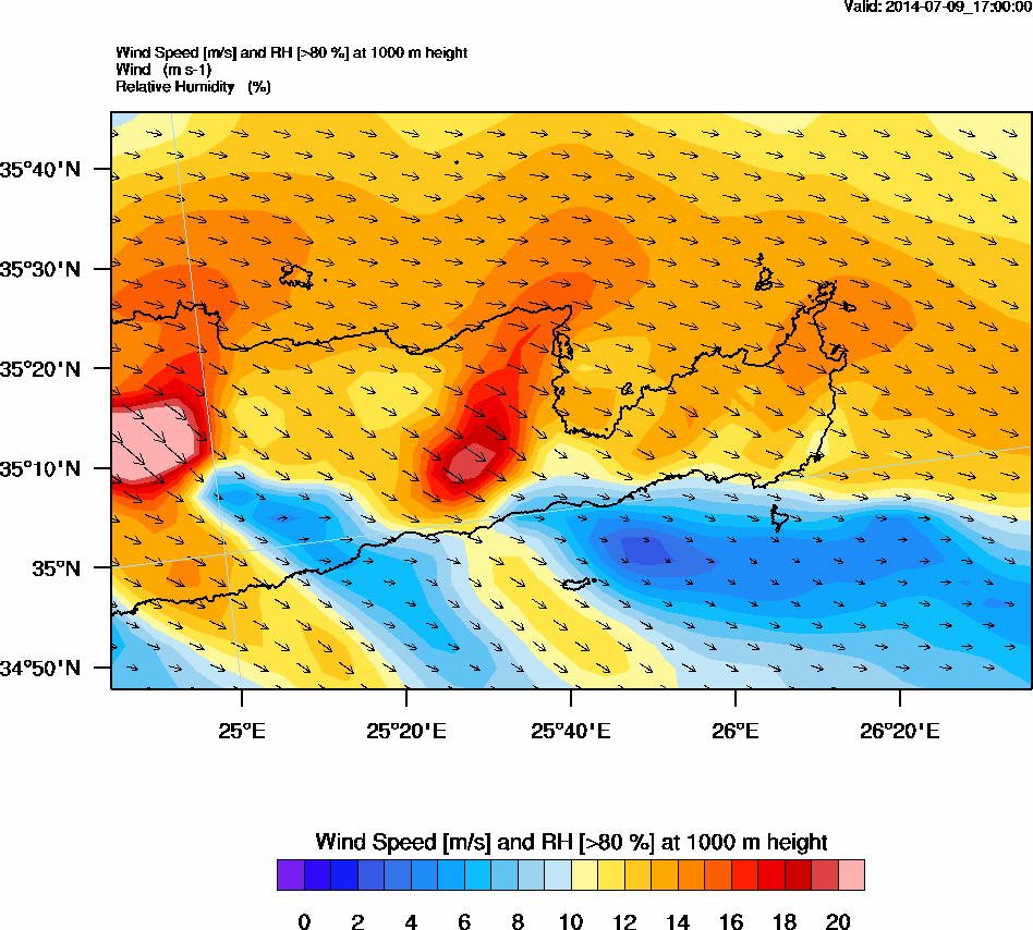 Graph 3: arw073.png - Wind Speed [m/s] and RH [>80%] at 1000 m height