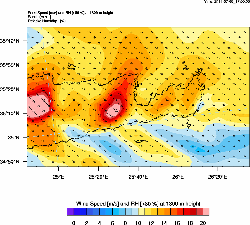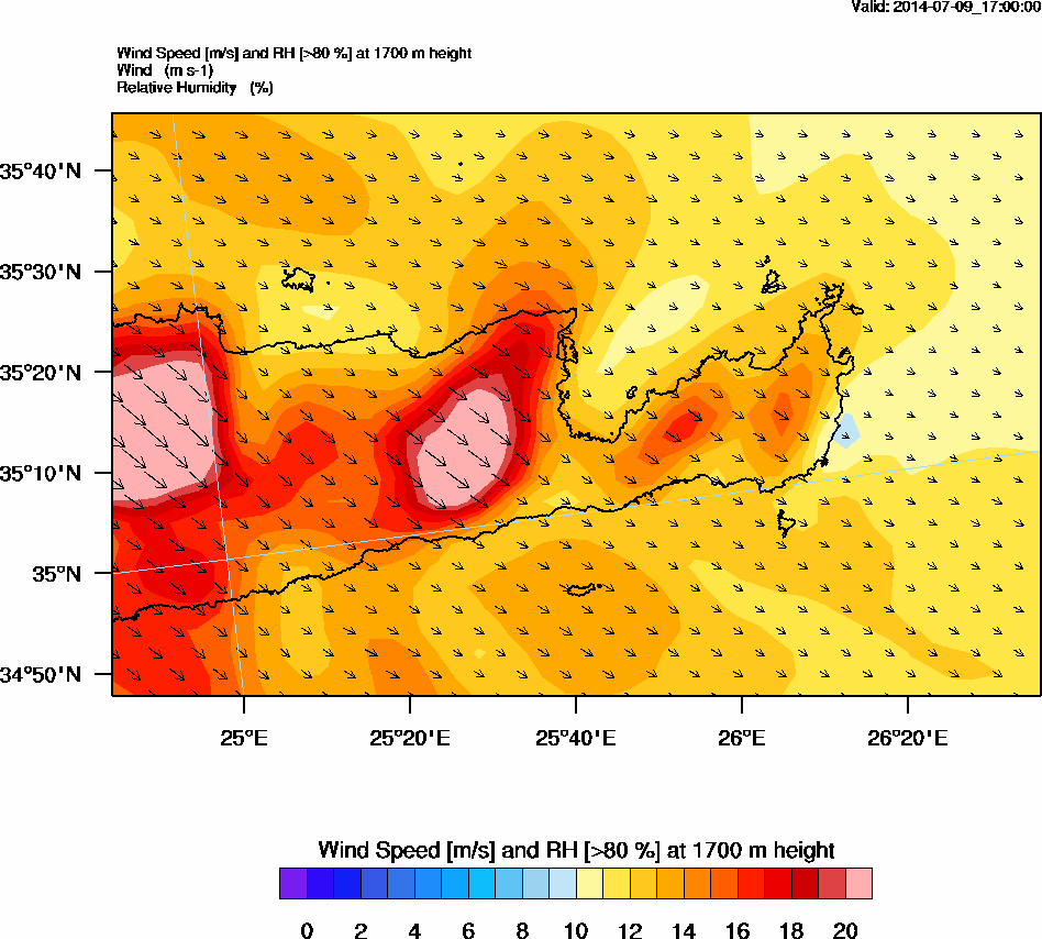 Graph 5: arw075.png - Wind Speed [m/s] and RH [>80%] at 1700 m height
