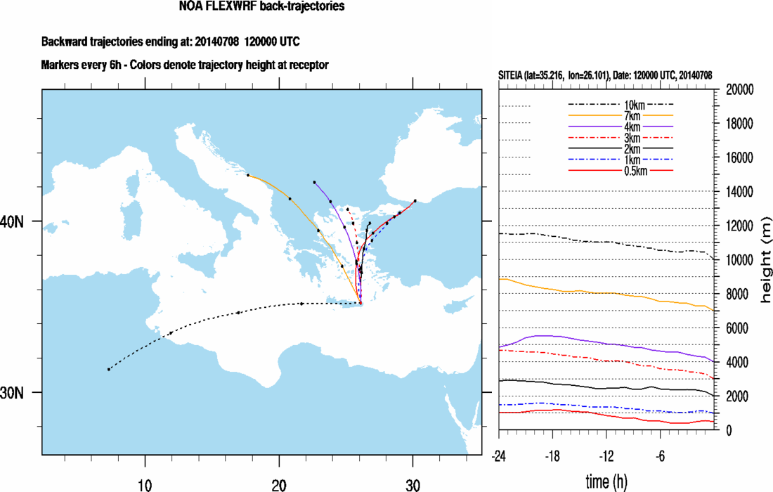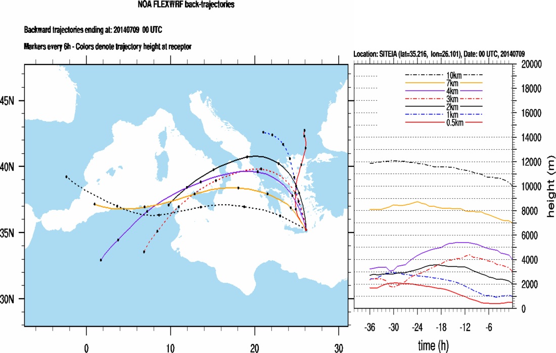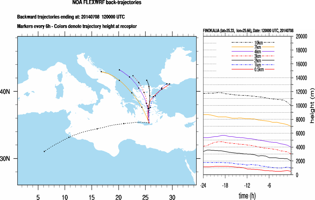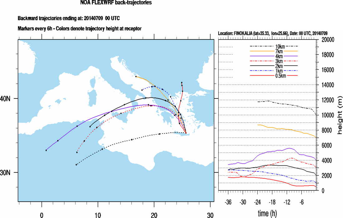 Graph 2: Backtrajectories forecast for Finokalia (+ 36 h)