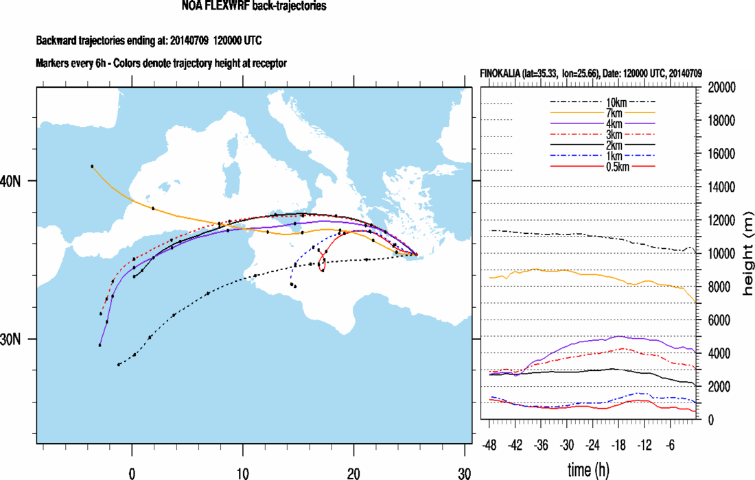 Graph 3: Backtrajectories forecast for Finokalia (+ 48 h)
