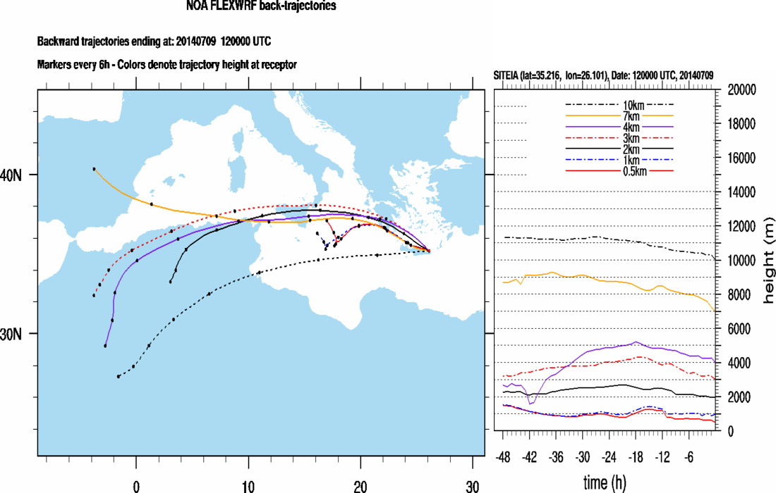 Graph 6: Backtrajectories forecast for Sitia (+ 48 h)