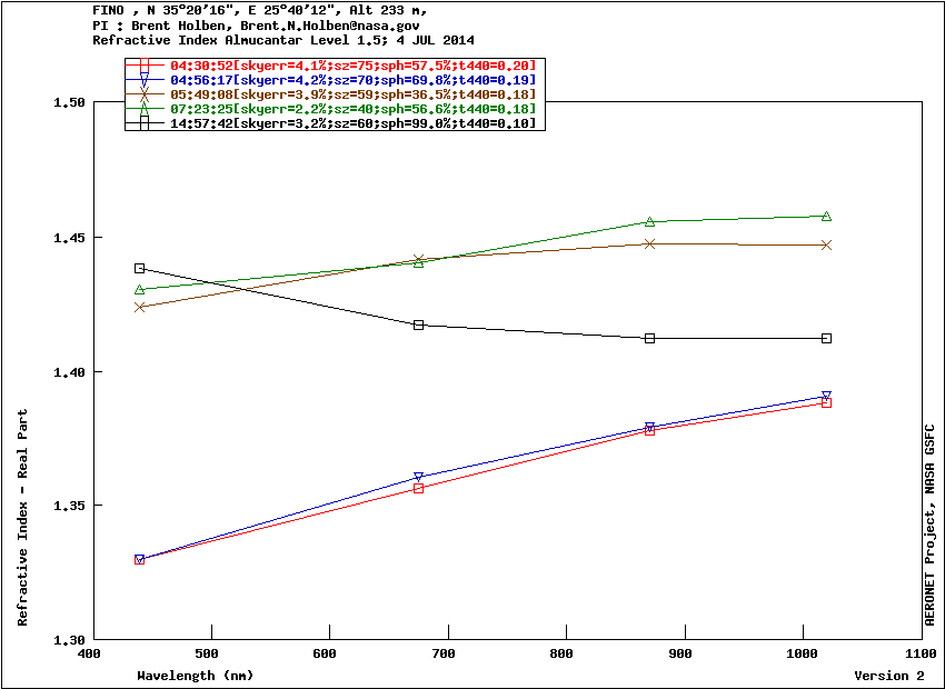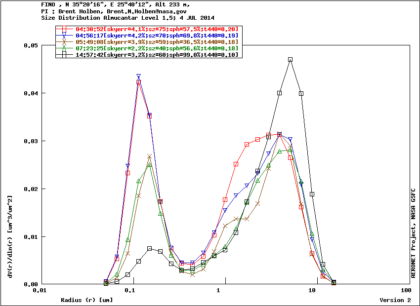 Graph 1: Aerosol volume size distribution -Level 1.5