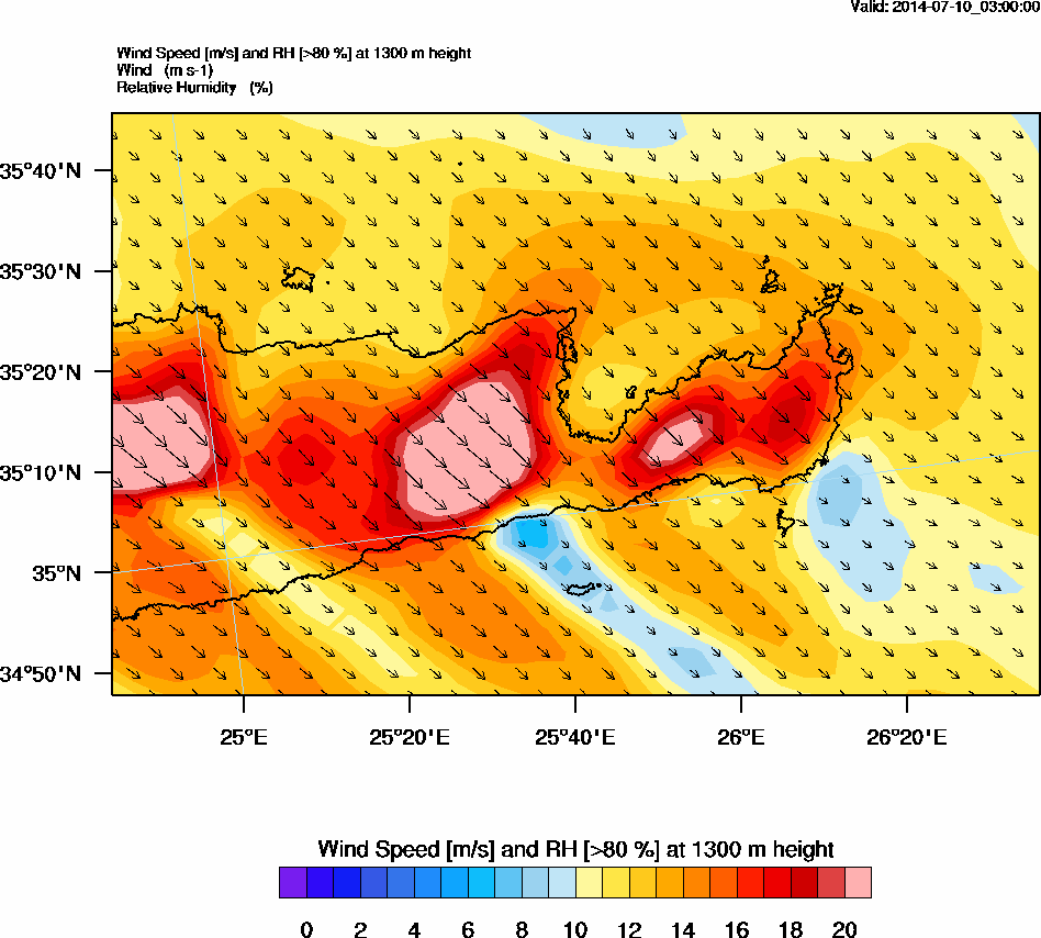 Graph 3: arw003.png - Wind Speed [m/s] and RH [>80%] at 1000 m height