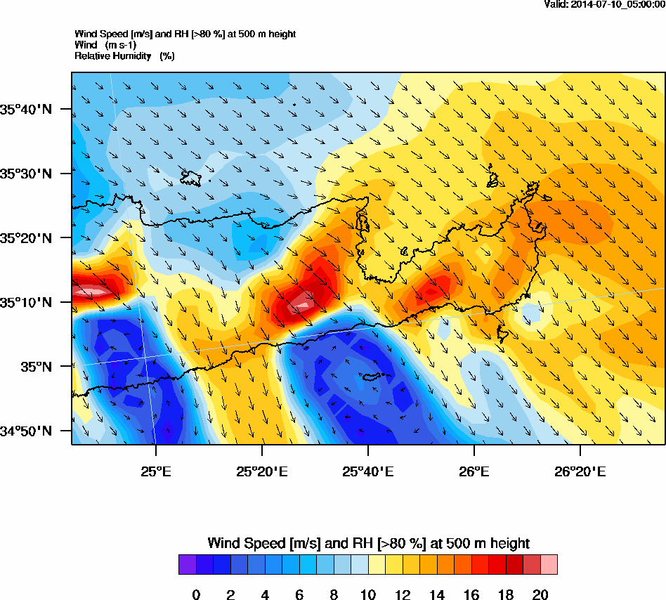 Graph 2: arw012.png - Wind Speed [m/s] and RH [>80%] at 500 m height