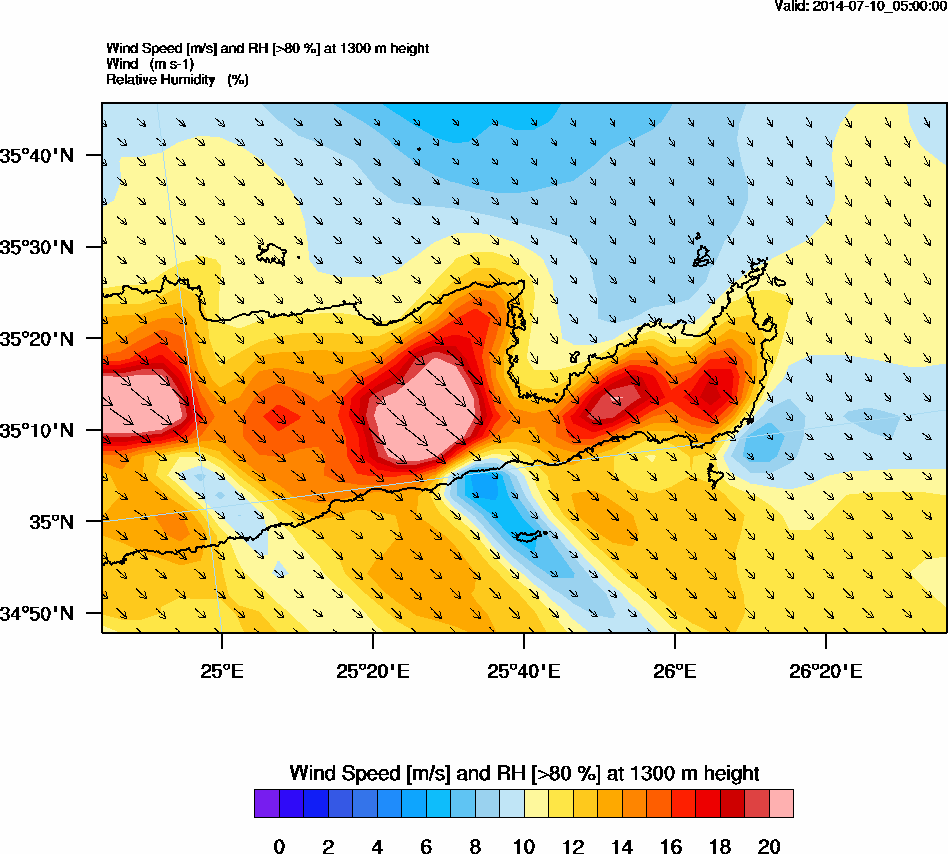 Graph 4: arw014.png - Wind Speed [m/s] and RH [>80%] at 1300 m height