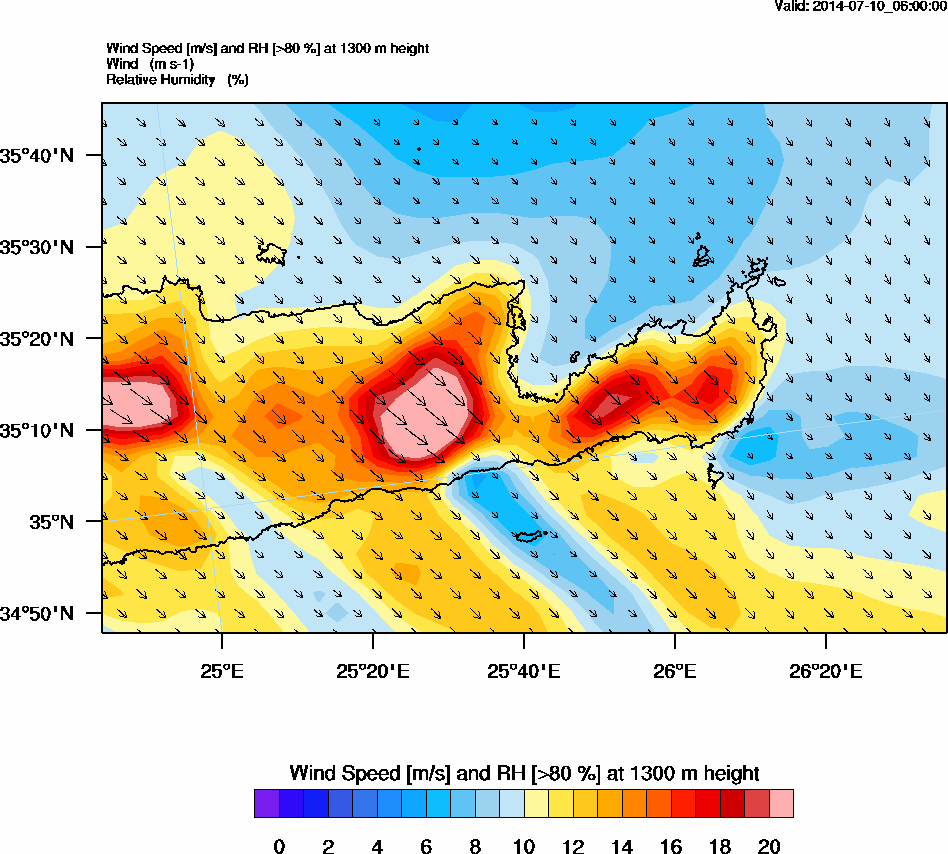 Graph 4: arw019.png - Wind Speed [m/s] and RH [>80%] at 1300 m height